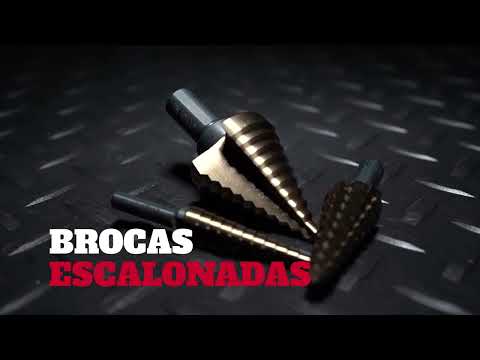 -Broca escalonada #7 de 1/4"-1 3/8" zanco con 3 planos, doble estría, identificación de cada diámetro