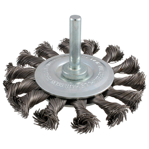 Carda circular trenzada alambre delgado de acero inoxidable 3" x 0.35 mm con zanco 1/4" Urrea