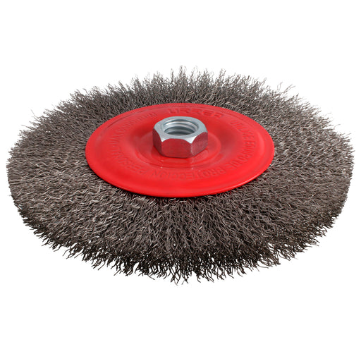 Carda circular ondulada alambre delgado de acero inoxidable 6" x 0.30 mm con rosca M14 Urrea