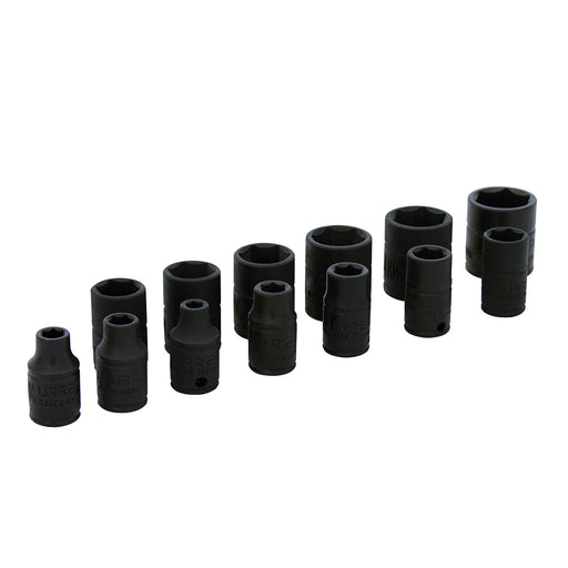 Juego de dados de impacto cuadro de 1/4", 6 puntas, métricos, 13 piezas Urrea