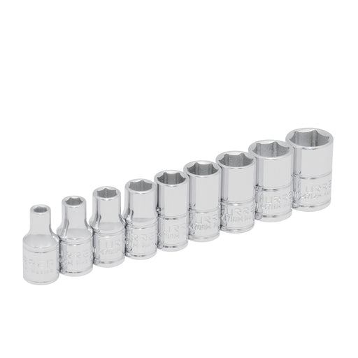 Juego de dados cuadro de 1/4", 6 puntas, métricos, 9 piezas Urrea