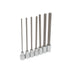 -Dados largos con punta hexagonal de 1/8" a 3/8" cuadro 3/8" en riel y clips en blíster.