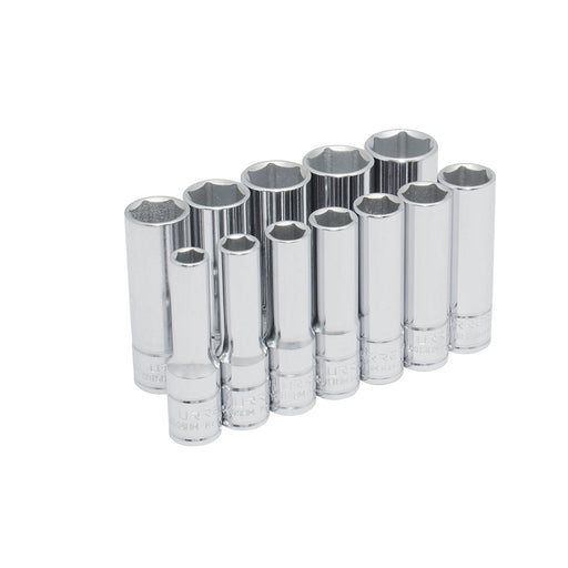 Ver todos los detalles-Juego de 11 dados largos métricos 3/8" -La línea de dados Urrea de 12 puntas están fabricados con acero de alta calidad permitiendo un alto desemp...