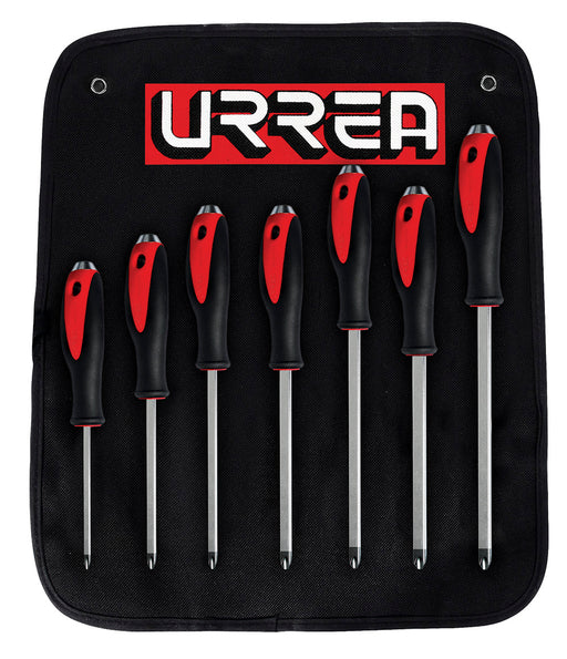 Ver todos los detalles-Juego de 7 destornilladores de golpe punta Phillips® Urrea -Punta negra evita desprendimiento de cromo. -Barra cuadrada permite el uso de llave pa...