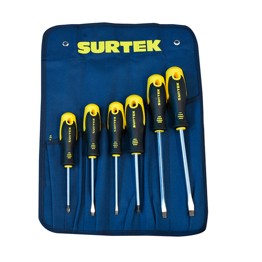 Ver todos los detalles-Juego de 6 destornilladores bimaterial combinado Urrea -Juego de destornilladores Urrea BI-materiales punta plana, en estuche. -Mayor capacidad de...