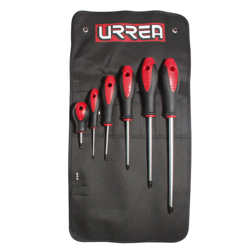 Juego de destornilladores con mango bimaterial punta Phillips, 6 piezas en estuche Urrea
