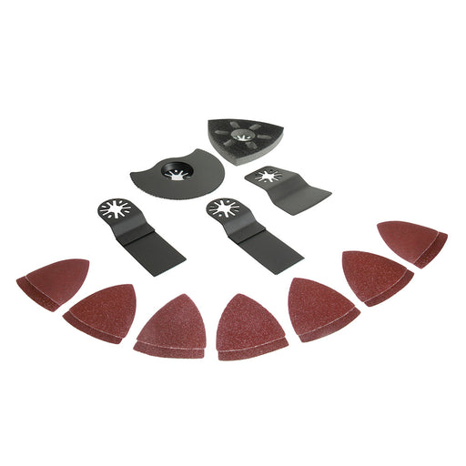 -1 raspador, 2 hojas de sierra 65 Mn, 1 sierra de media luna, 1 almohadilla de lijado, 14 de repuestos de lijas -Marca Surtek