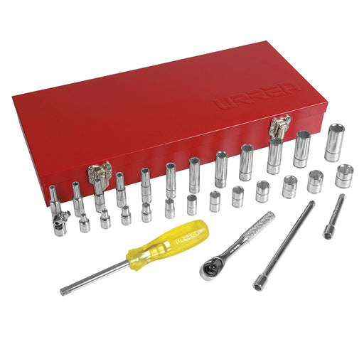 Juego de dados y accesorios cuadro de 1/4" métrico, 30 piezas Urrea