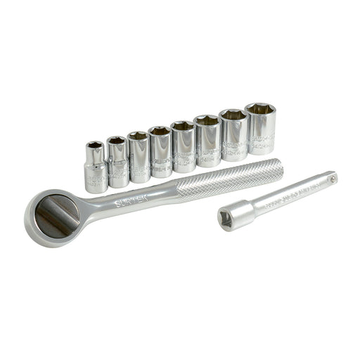 Juego de dados y accesorios cuadro de 1/4" métrico, 10 piezas Surtek