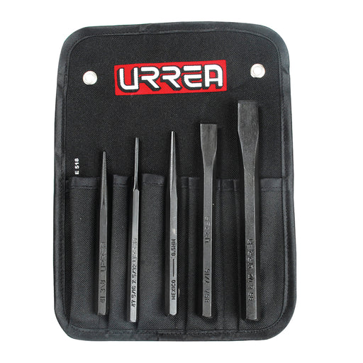 -Juego de cinceles, punzones y botadores 5 piezas Urrea -Fabricados en acero microaleado con temple. -Diseño del cuerpo hexagonal. -Juego 6 piezas.