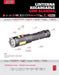-LED CREE+ COB. 600lm LED frontal. 300 lm LED lateral. Base magnética. 4 modos de luz + 2 modos laterales. Distancia de iluminación 150m. Puerto de carga USB. Alarma de advertencia. Clip sujetador. Cabeza de ataque. Power bank.