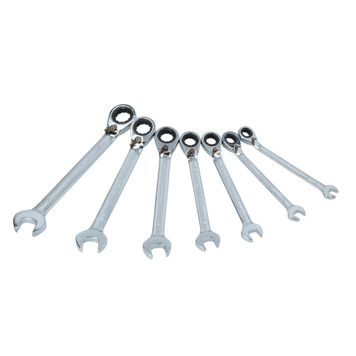 Juego de llaves combinadas pulido espejo de matraca flex en pulg, 12 puntas,7 pz en rack Urrea