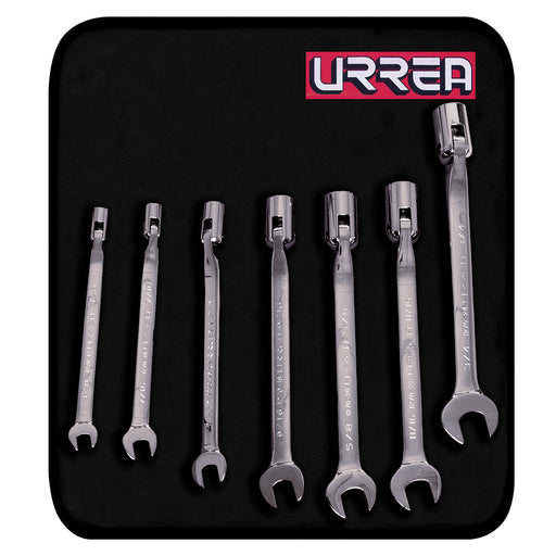 -Juego de 7 llaves flexibles en pulgadas Urrea -15 ° de inclinación. 180° de movimiento. -Diseño reforzado para soportar torques aplicados con el d...