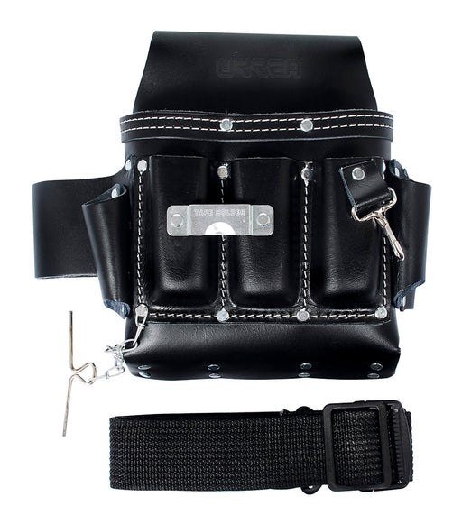 -Estuche portaherramientas de cuero 9 compartimientos Urrea -1 compartimento grande. -2 compartimentos medianos. -1 porta martillo metálico. -3 com...