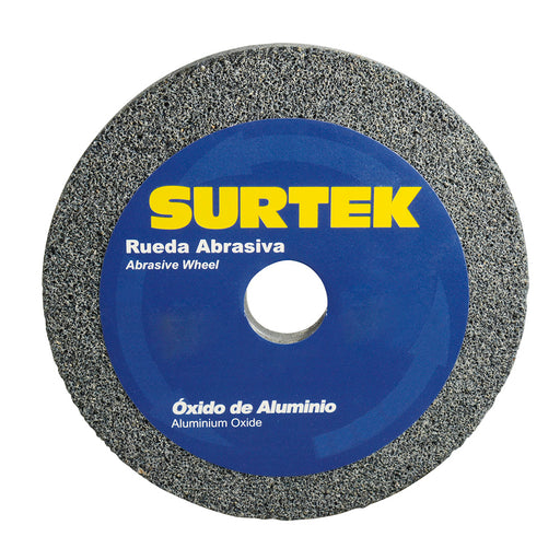 -Rueda abrasiva de óxido de aluminio 6 x 3/4" grano 60 Surtek -Ideal para fundición, aceros y metales ferrosos en general, soldaduras -Para usarse ...