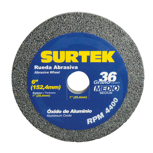 Rueda abrasiva de óxido de aluminio grano 36, 6" x 3/4" Surtek