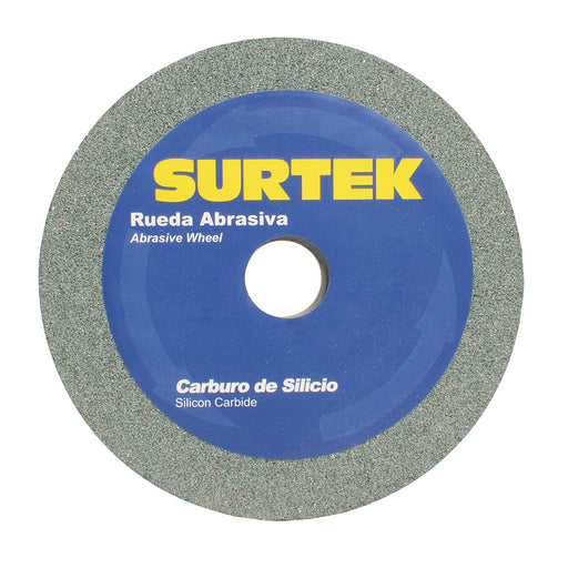 -Rueda abrasiva carburo de silicio 6 x 3/4" grano 60 Surtek -Ideal para materiales no ferrosos como aluminio, bronce, cobre, etc. -Para usarse en e...