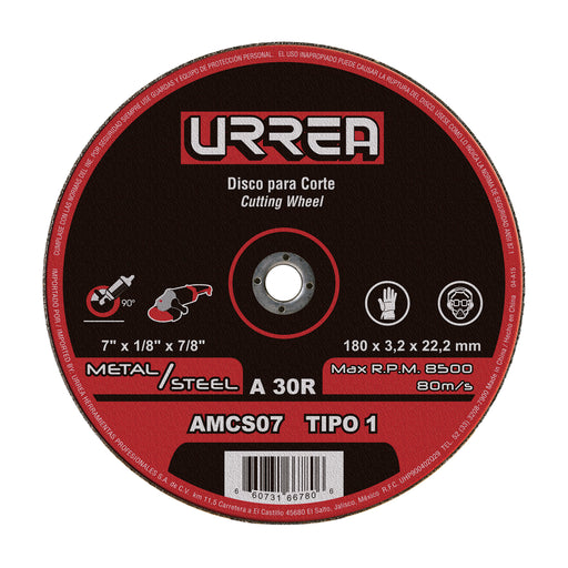 Ver todos los detalles-Disco abrasivo tipo 1 para metal 7"x1/8"x7/8" -Uso general -Óxido de aluminio