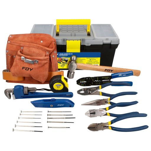 Juego combinado de herramientas para carpintero 15 piezas, con caja plástica Foy